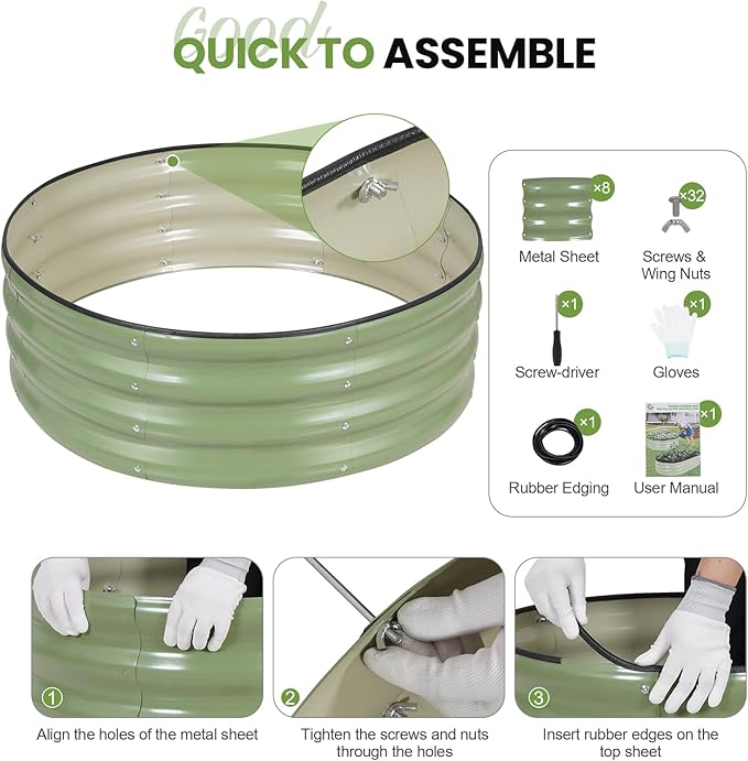 - 【Safe Edge & Rubber Trim】 The planter raised beds features a rolled top edge with a rubber strip to prevent injuries during setup and gardening. This thoughtful design enhances safety, especially for families with children and pets.