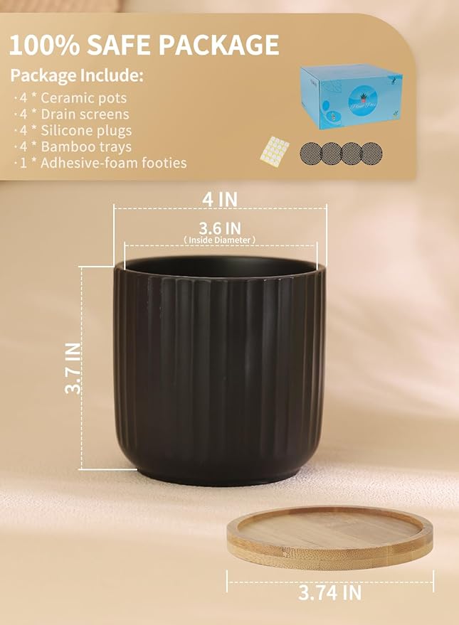 - Small Size Pots - 4" diameter x 3.7" height. Perfect size for different plants' thriving. (NOTE: Plants NOT Included, this product may be in 0.05 inches out.)