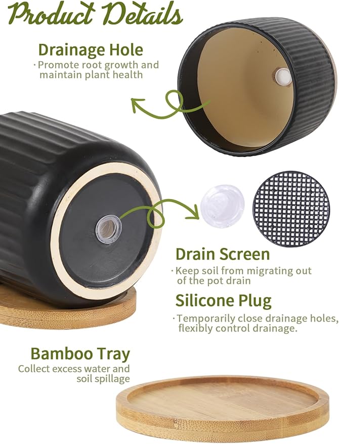 - Drainage Hole - The planter pot with a drainage hole allows execs water to drain away in time which can make your plants breath more freely. Mesh pad keep soil from migrating out of the pot drain, and keeping the hole unblocked for a long time. You also could use the pot with the plug if you don't need the drain.