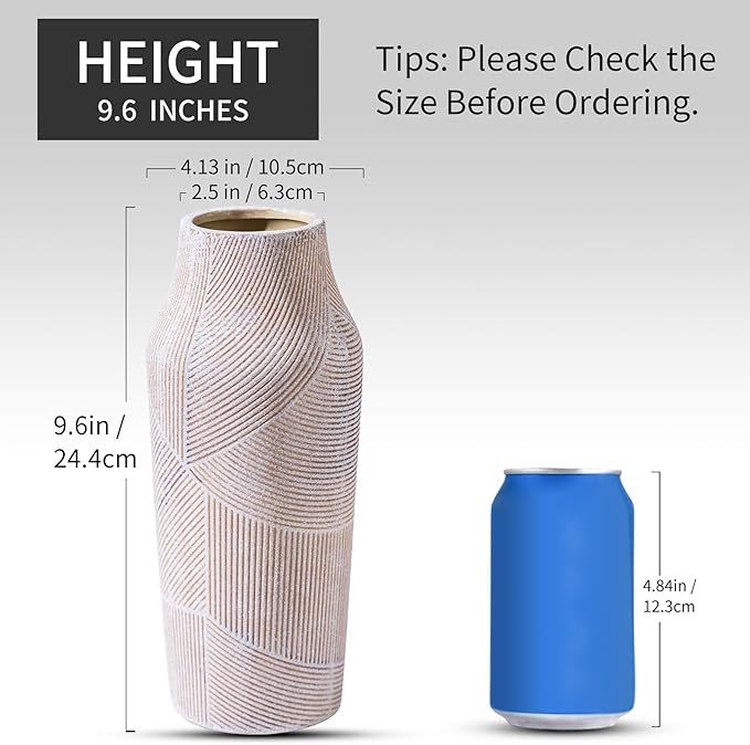- [Farmhouse Vintage Design] Inspired by European countryside aesthetics, this 9.6" rustic ceramic vase combines stone texture with concrete grey finish for timeless farmhouse decor. Perfectly coordinates with modern, boho or industrial styles. Use as a centerpiece on fireplace mantels, kitchen counters, bookshelves, or entryway consoles to elevate home decor instantly.
