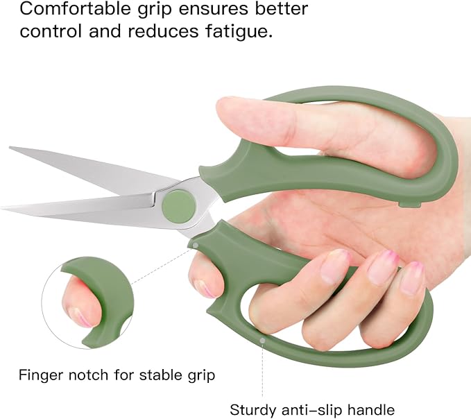 - ERGONOMIC HANDLE: The handle adopted non-slip PP material, durable yet soft; The ergonomic handle with groove design, which is portable and lightweight, let you comfortable to grip; The delicate appearance will the shear looks rather functional and stylish.