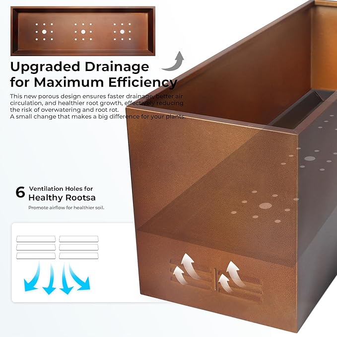 - Removable Insert with Drainage Holes: Includes a convenient removable insert plate with pre-drilled drainage holes to reduce the amount of soil needed to fill the containers and prevent water buildup and promote healthier root systems.