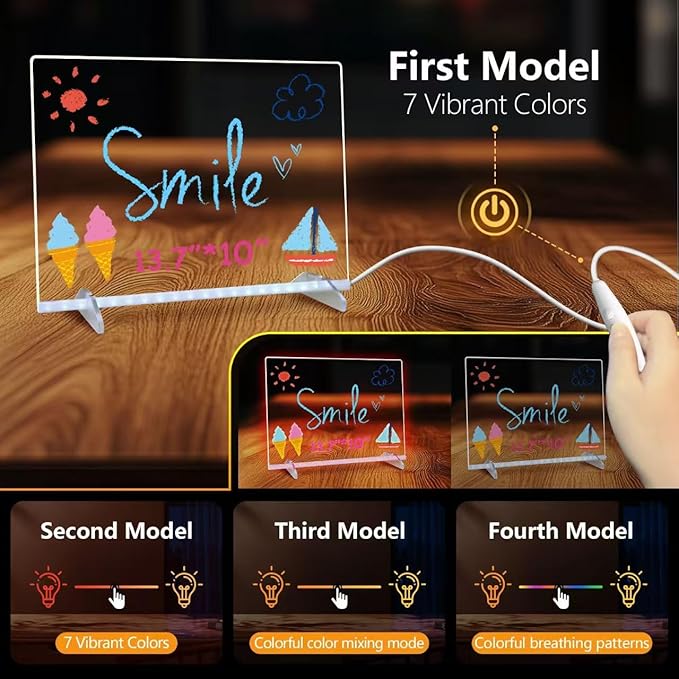 Led Drawing Board for Kids, LED Note Board with Colors,Doodle Glow Drawing Board, 13.7"X10" 6 Modes & 8 Colors, Light Up Drawing Board, Led Writing Board with Battery Pack for Home/Office/Decor