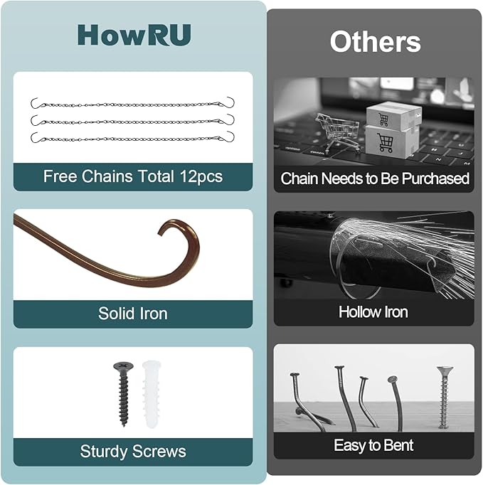 - 【Customer-Centric Convenience】 Free iron chains provide you with more diverse ways to use our product. HowRU promises that our hanger bracket and chains are premium. If you have any questions about our products in the purchase process, please feel free to contact us. We will give you a satisfactory reply as soon as possible.