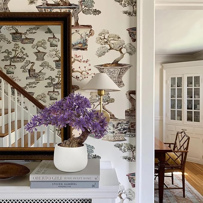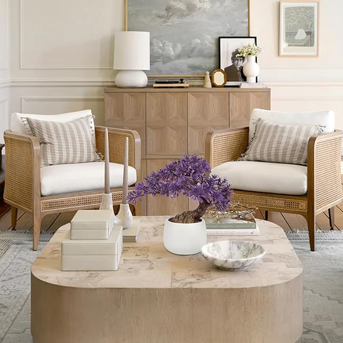 Purple Artificial Bonsai Tree Juniper Faux Plants Indoor Fake Plants Decor with Ceramic Pots for Home Table Office Desk Bathroom Shelf Bedroom Living Room Farmhouse Decorations