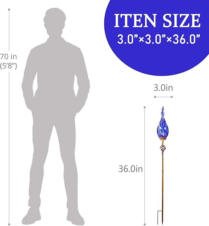 - These solar flame lights outdoor are made of high-end materials with excellent waterproof performance. Hand blown glass is very durable compared to acrylic,they can stably decorate paths, gardens, lawns and other outdoor spaces, shining brightly through rain, wind, snow and frost.