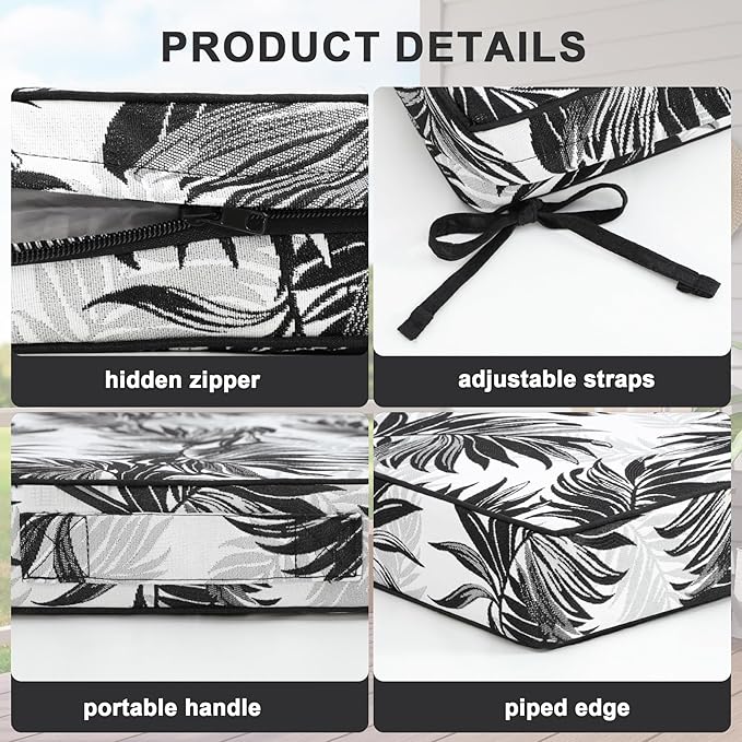 Favoyard Outdoor Chair Cushion 19 x 19 x 3 In Waterproof Pattern Fade Resistant Cushions for Patio Furniture with Removable Cover Attach Straps 28D Foam Insert Cushions Pads for Seat Sofa Couch 2 Pack