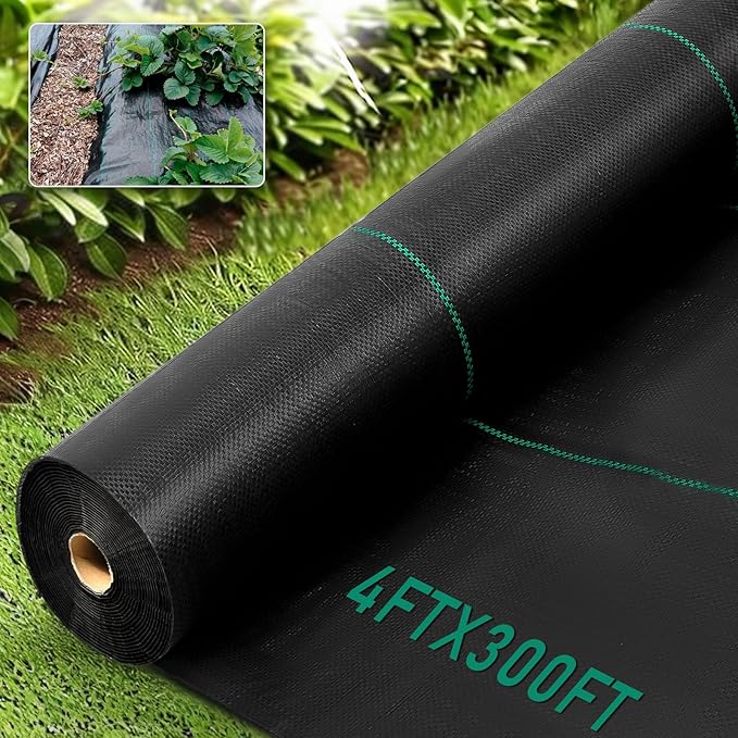 - Garden Fabric Weed Barrier Features:This garden fabric weed barrier measures 4ft x 300ft and is easy to cut. This garden weed barrier fabric is convenient for DIY projects, allowing you to customize the size and shape to meet your specific needs. The garden fabric weed barrier features green stripes for easy plant alignment. This lightweight ground cover fabric is easy to move around and cut holes in, yet tough enough not to tear.