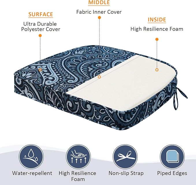 - 【Non-slip Ties and Piped Edge】 The two non-slip ties can be fastened to your furniture to keep the outdoor cushion in place. Some seams are finished with piping, which reinforces the edges and makes the outdoor furniture cushion more stylish.
