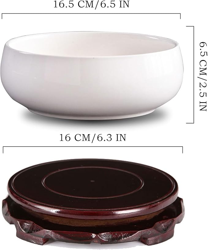 - 【Flower Pot Size】Package includes: 1 PCS succulent pots without potted plants, the dimensions are: 6.5 inches in diameter x 2.5 inches in height, 1 360° rotating flower pot round base, the dimensions are: 6.2 inches in diameter x 1.2 inches in height, the rotating base can also be used to place favorite things at will, showing different temperaments.
