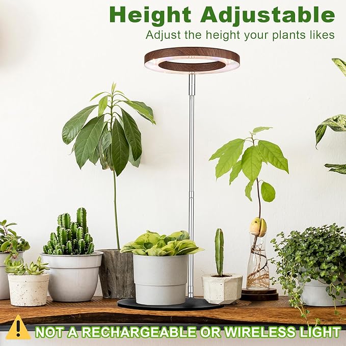 yadoker 72 LEDs Plant Grow Light for Indoor Plant,Aluminum Walnut Wood Grain Desk LED Grow Light, Height Adjustable,6.3" Aluminum Housing,Automatic Timer with 8/12/16 Hours,10-Level Brightnes