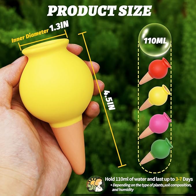 - đăVacation Plant Watering DevicesăOne watering spike can provide water for your plants for about 3 to 5 days. The wide-mouth design can be used with various water bottles, extending the watering interval. It is especially suitable for small and medium-sized potted plants (for larger plants, it is recommended to use 2 to 3 spikes). You can go on a trip with ease without worrying about your plants