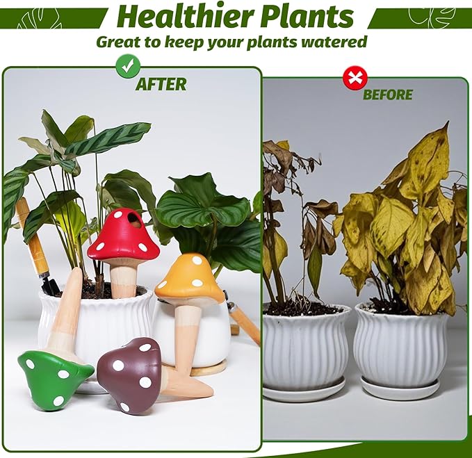 - đăCute Self Watering StakesăMeet your plants' new best friends! These mushroom terracotta watering globes are as practical as they are adorable, featuring a variety of charming designs that add a playful touch to your indoor/outdoor plants! Give your greens an instant vitality makeover