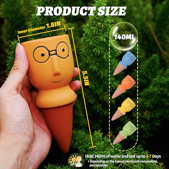 - đăCute Self Watering StakesăMeet your plants' new best friends! These terracotta watering spikes are as practical as they are adorable, featuring a variety of charming designs that add a playful touch to your indoor/outdoor plants! Give your greens an instant vitality makeover