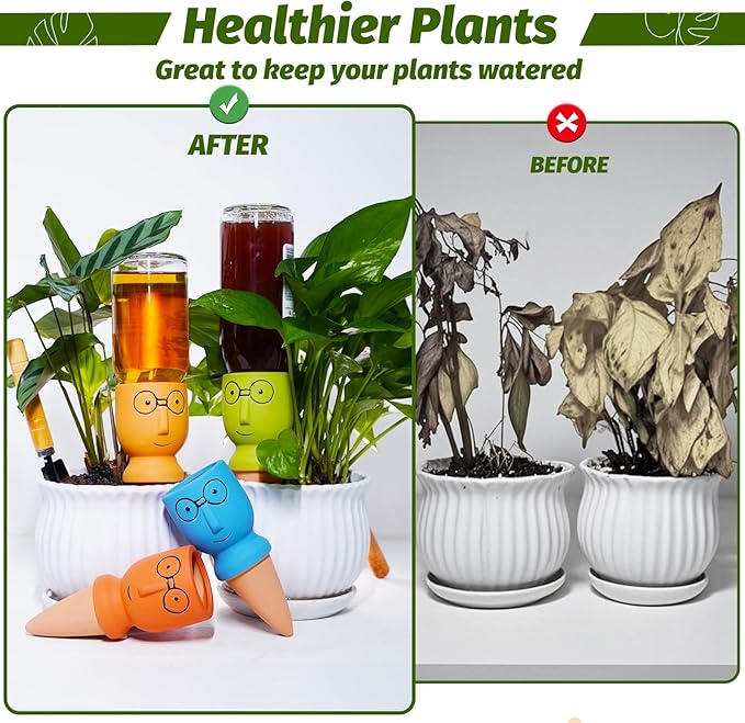 - đăGreat Time Saver for WateringăTransform watering from chore to cherished routine-turn plant care into joyful moments. Never miss watering time again. Great for indoor plants, hanging baskets, and even outdoor potted plants. Overall, these terracotta self watering stakes are a great option for anyone who wants a simple and effective way to water their plants