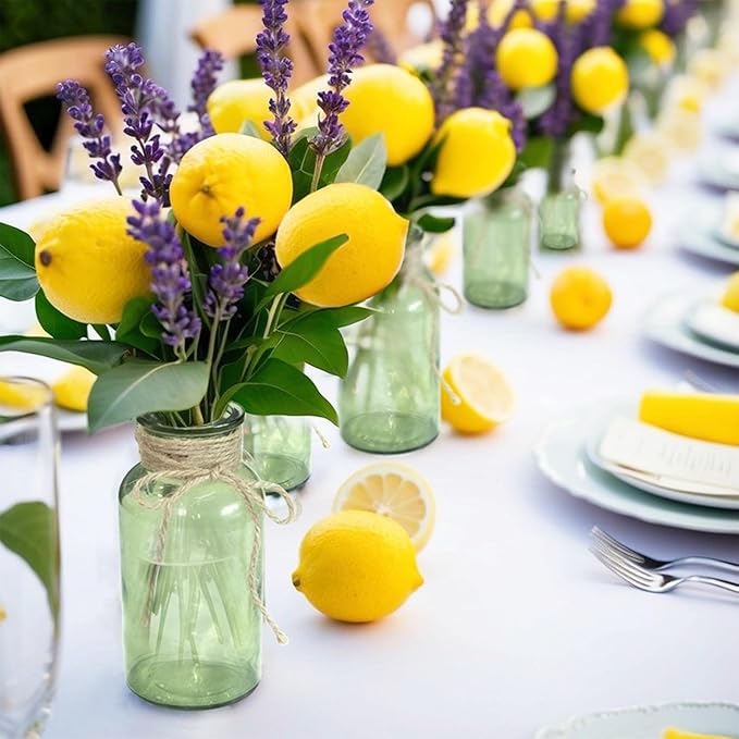 Vintage Glass Flower Vase,12 Pack Green Farmhouse Glass Centerpiece Vases Mason Jars for Weddings, Parties & Home Decor Bulk (12, Green)