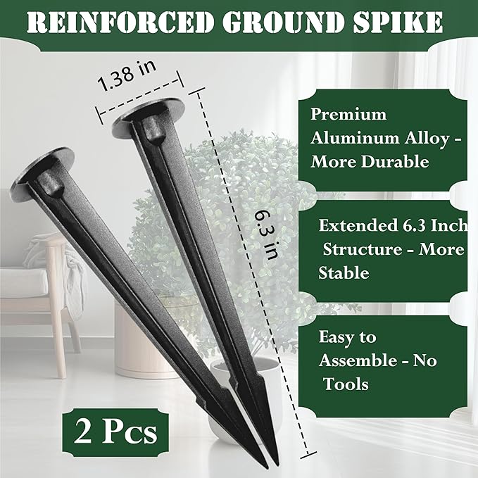 - Easy Assembly : Equipped with a 6.3 inch metal ground spike, it's easier to plant compared to traditional flower pots. The ground spike design allows you to effortlessly insert it into soil, grass, or pots without additional tools, making installation simple and placement flexible. Note: The leaves may be slightly deformed during transportation and need to be reshaped manually.