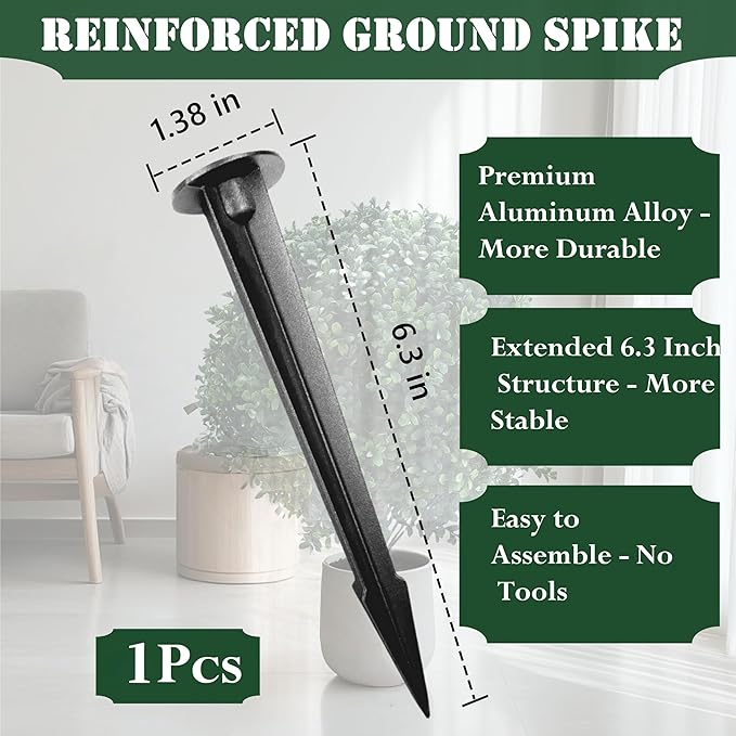 - Easy Assembly : Equipped with a 6 inch metal ground spike, it's easier to plant compared to traditional flower pots. The ground spike design allows you to effortlessly insert it into soil, grass, or pots without additional tools, making installation simple and placement flexible. Note: The leaves may be slightly deformed during transportation and need to be reshaped manually.