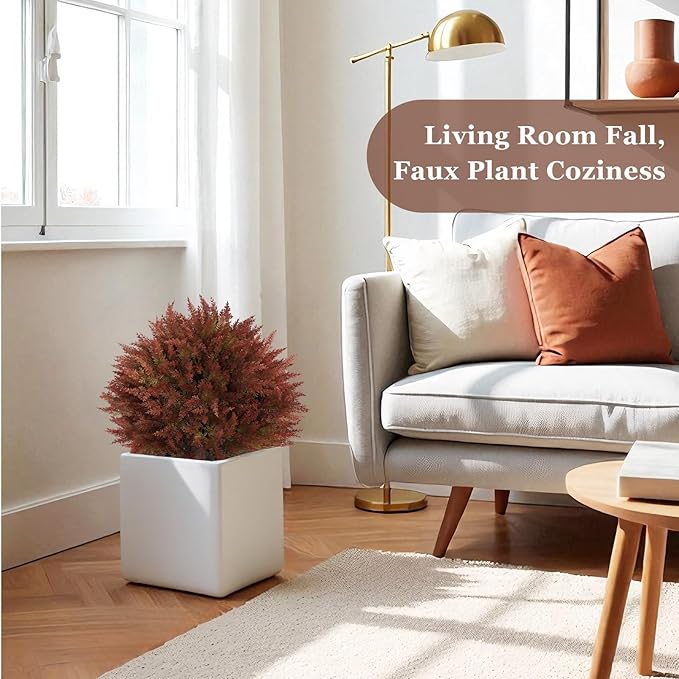 - 【Low Maintenance – Natural Autumn Shedding Look】Skip watering, trimming, or raking. These faux bushes keep their vibrant color with minimal care. A few loose leaves may shed during setup or handling, mimicking the gentle leaf fall of real autumn plants for added seasonal authenticity