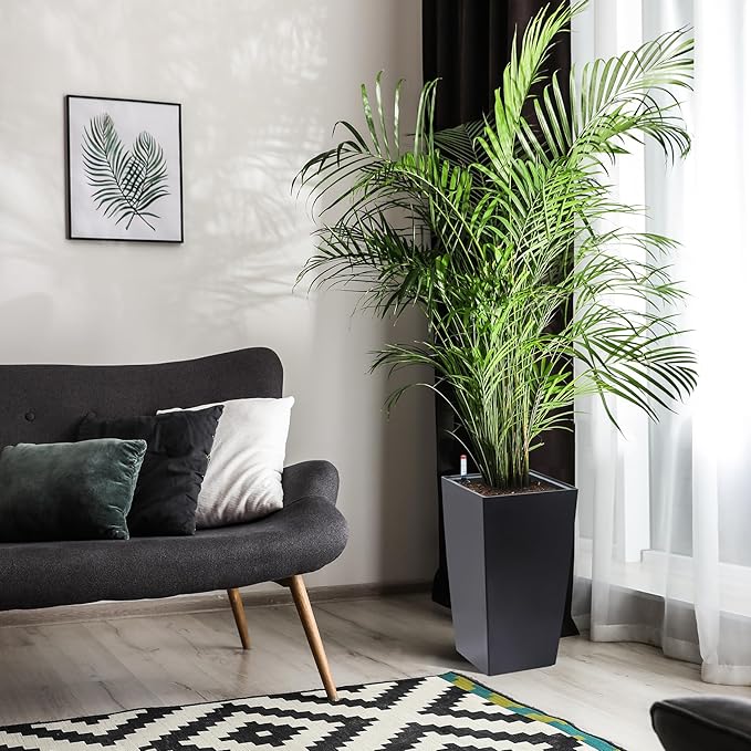 - Automic Watering System: Each tall black planters comes with built-in drainage holes and a sink to ensure that your greenery absorbs water smoothly and minimizes root rot. When the water level is low, the automatic watering system kicks in to provide your plants with the necessary moisture with minimal effort
