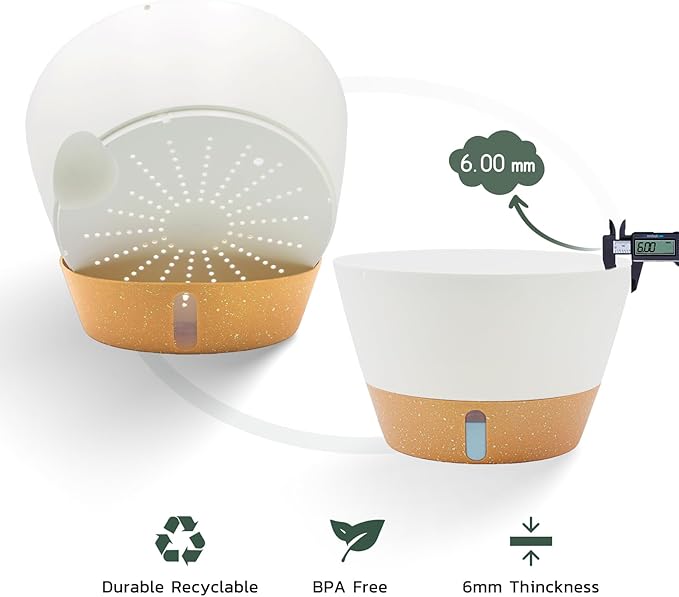 - 【Ventilation & Drainage】The easy-to-remove tray design simplifies cleaning and maintenance. The tray stores water for 7 days or more, and the mesh ventilation holes in the bottom of the self-watering pot ensure optimal aeration, providing plenty of breathing space for your plants