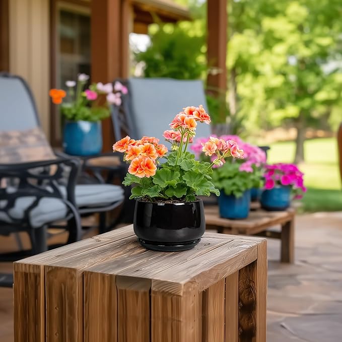 G EPGardening Small Ceramic Planter - 4 Inch Succulent Pots with Drainage Hole & Sacuer, Flower Pots for Indoor Outdoor Plants, Modern Decorative Round Planter, Room Decor, House Warming Gifts, Black