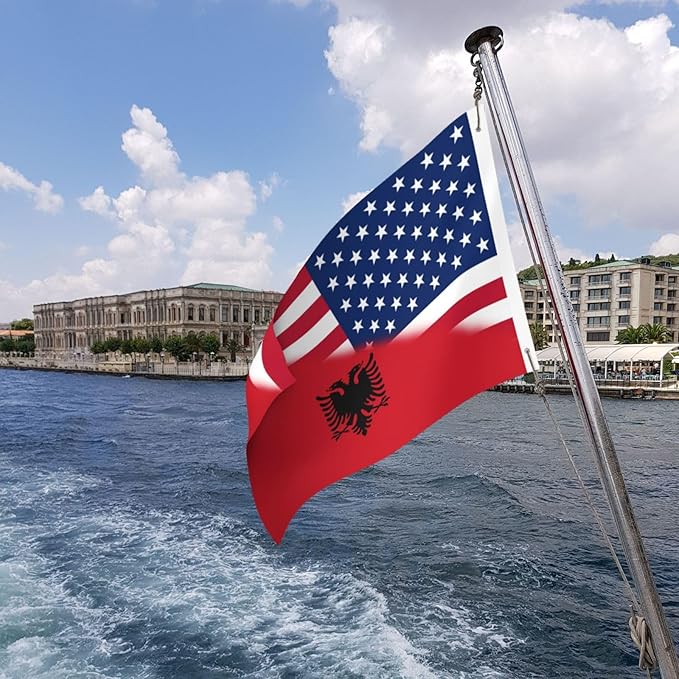 - This 2x3 ft flag Vintage America Albania Albanian Flag banner is stitched double all around the edge and strengthened by two brass grommet to increase flag life and prevent fraying. Installation and disassembly are very convenient.