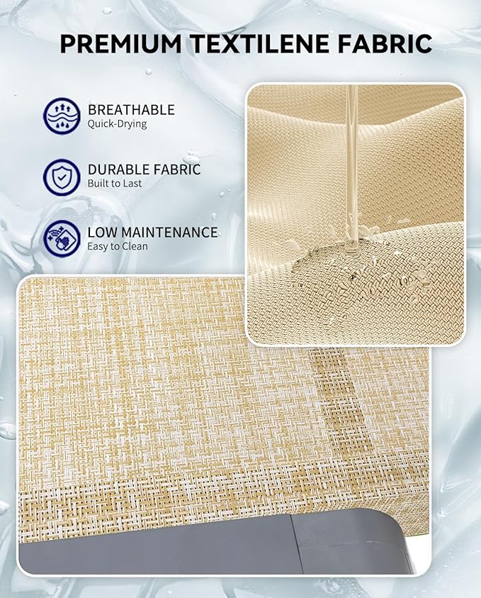 - 【ALL-SEASON COMFORT】Crafted from premium Textilene fabric, our outdoor chaise lounge is weather-resistant and quick-drying, perfect for all-season use. Its flexible and breathable design keeps you cool on hot days, while the easy-to-clean surface requires only a quick wipe with a damp cloth for effortless maintenance and lasting comfort