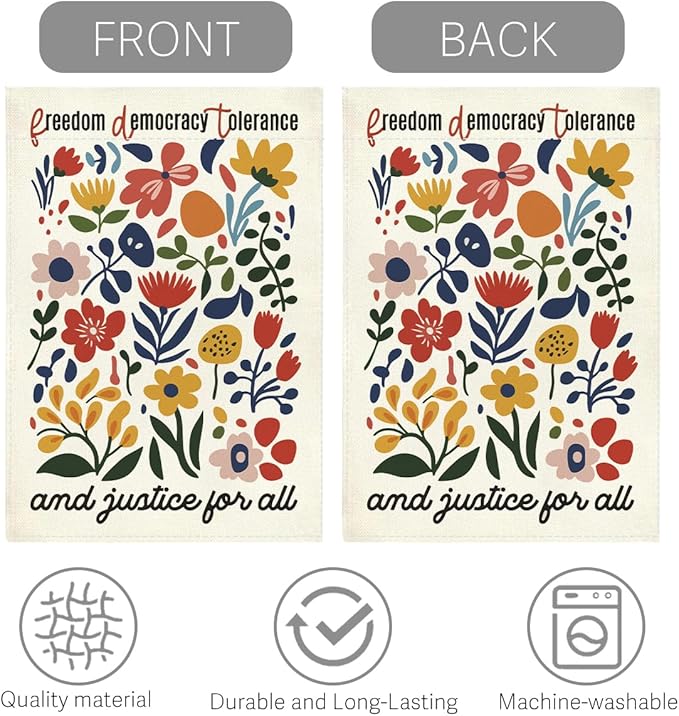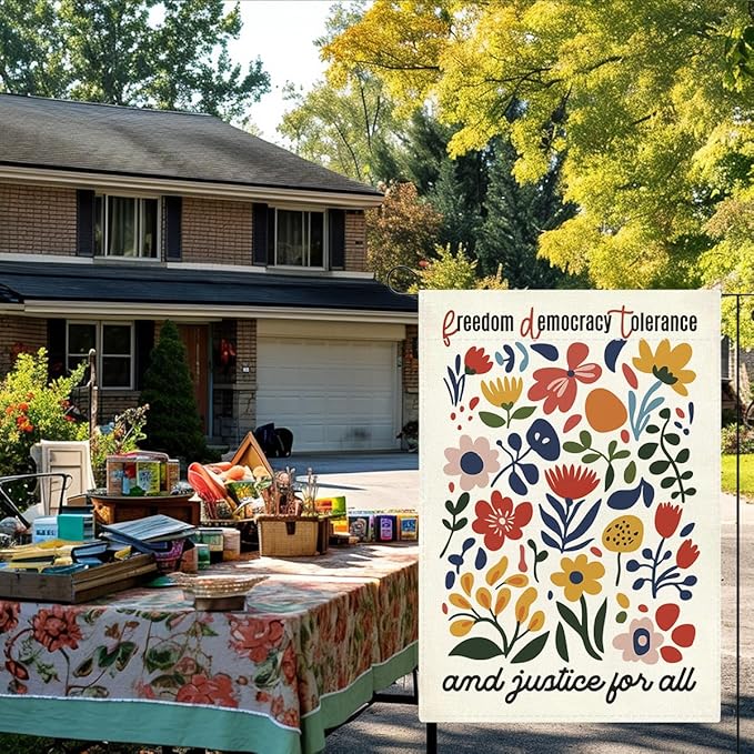 Social Justice Encourage Garden Flag Freedom Democracy Tolerance And Justice for All Decorations Small Double Sided Burlap art Stained Glass Style Garden Flags 12 x 18 Inch for Outside