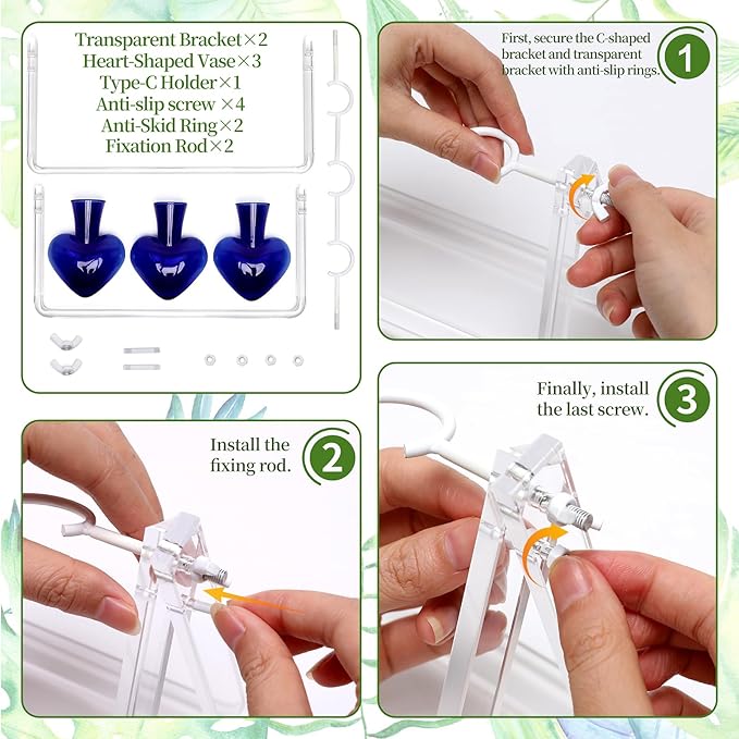 - Great Combination - The frame is made of transparent acrylic, formed in one piece, sturdy and durable. The three colored glass bottles are made of high borosilicate heat-resistant glass (thick, durable, non-fading, and long-lasting). The elegance of the acrylic and the beauty of the colored hearts add a touch of freshness and grace to your home and office.