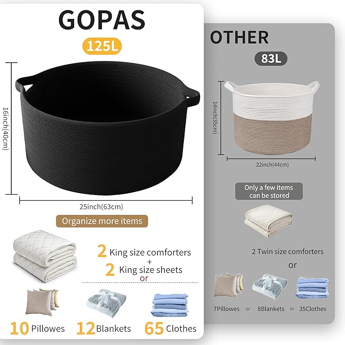 - Exquisite design style: We have carefully selected classic black colors for these rope basket bins for laundry or blanket. Our basket is a new stylish alternative for all of your storage needs and it fits perfect with any kind of Home Decor.Keep your home looking clean & tidy & beautiful