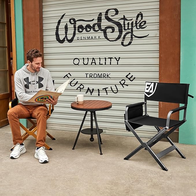 EVER ADVANCED Aluminum Lightweight Directors Chair Foldable, Folding Studio Movie Chairs Camping Event Vendor Chair, 19" Seat Height Black Fabric/Grey Frame, Support 350lbs