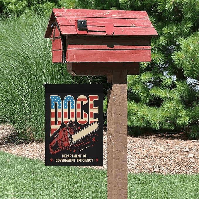 Chainsaws For Bureaucracy D.O.G.E US Flag Garden Flags 12x18 Double Sided Funny Banner for Indoor