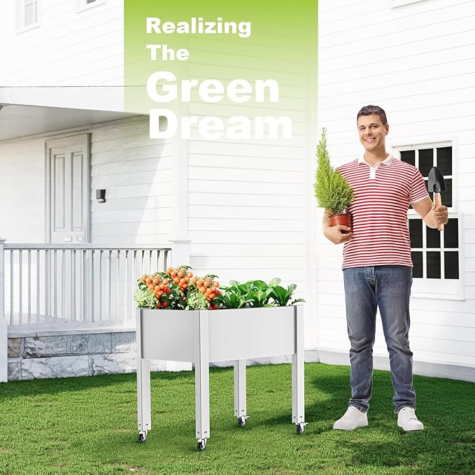 - EASY MOBILITY & STORAGE: Equipped with 360° rotating wheels, this planter box can be effortlessly repositioned to maximize sunlight exposure. The sturdy leg design provides additional stability, making it both easy to move and securely placed when needed.