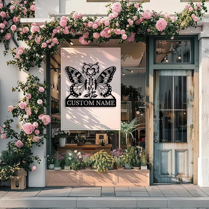 Custom Butterfly Metal Sign,Personalized Butterfly House Number Signs,Personalized Gardener Name Sign,Garden Patio Wall Decor (Style-6)