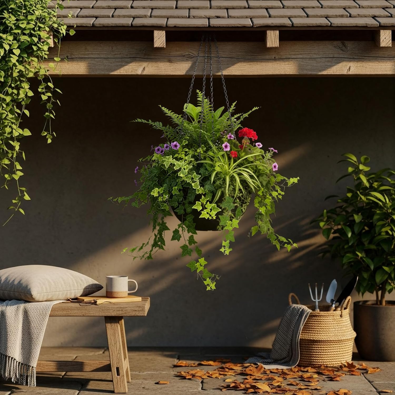 - Convenient Hanging Design Equipped with a robust hanging chain, this hanging basket for plants outdoors or indoors can be effortlessly displayed wherever you desire, be it your garden, patio, or windowsill; The design requires minimal effort, ensuring you spend more time enjoying your plants
